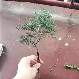 杜松嫁接砧木应选用臭柏(沙地柏)。最佳嫁接期为3月下旬至4月下旬。首先采1至2年生,长约10至15厘米接条,摘去下部3/4的叶子,注意顺着叶片生长的方向顺着摘,不然会带下树皮。用酒精棉球擦洗刀片,将接穗基部用刀削一短斜面,然后翻转来,以左手的拇指和中指捏住穗条的顶部,穗身垫放在食指上,右手拿住刀柄,从顶芽针叶附近逐渐切到穗心,然后顺着穗心纵向削去半边接穗,削面要求平直光滑,一刀完成。再摘砧木嫁接部位的全部针叶,左手握住砧木,右手握刀,平贴砧干从上而下通过韧皮和木质之间切开,露出白色形成层,割断砧木削开的皮部,使之成尖齿状。