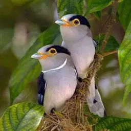 银胸丝冠鸟是雀形目阔嘴鸟科的鸟类,在全世界共分化为10个亚种。体长16-18厘米。嘴宽阔、天蓝色,…