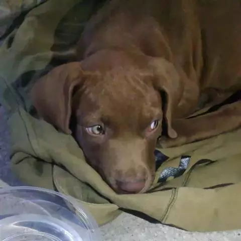切萨皮克湾寻猎犬头骨宽而圆,中等大小,微平顶。具有聪颖的表情。耳朵较小,适合地位于头上,松弛下垂。…