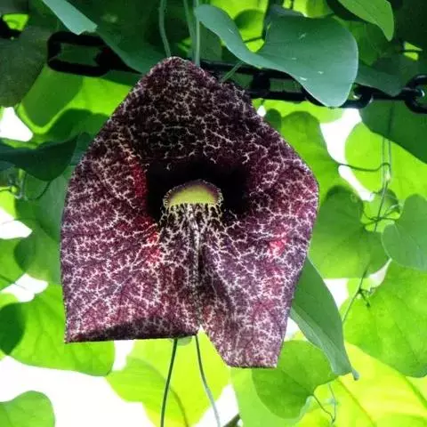 巨花马兜铃花朵的主要部分只有一片,看起来好像是一个巨大的、带有纹理的兜状物,而不像普通的花朵那样拥…