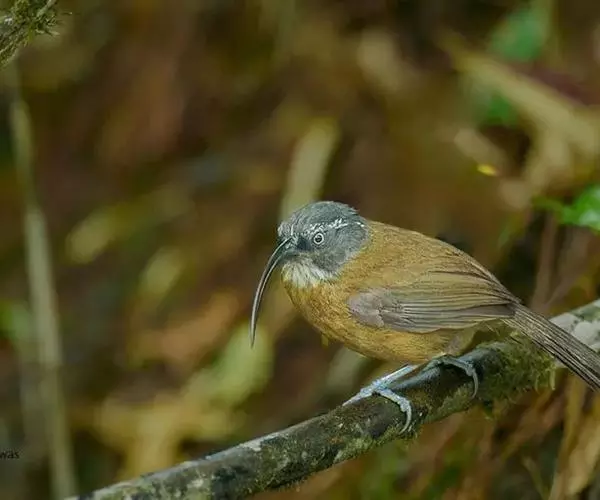 剑嘴鹛(学名:Xiphirhynchus superciliaris):中型鸟类,体长21-22厘米。嘴特别细长而向下弯曲,头顶和头侧烟灰色具长而窄的白色眉纹,在暗色的头上极为醒目,其余上体棕褐色或褐色。颏、喉白色杂有灰色条纹,其余下体锈红色。