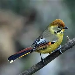 黄喉雀鹛是雀眉科、拟希鹛属小型鸟类,体长11-12厘米。头顶浅黄色具黑色鳞状斑,…