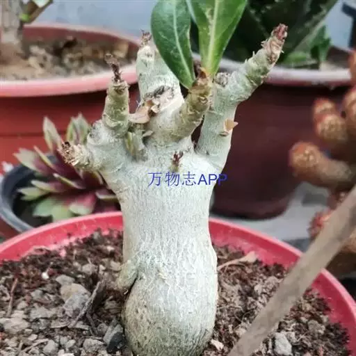 沙漠玫瑰的修剪工作也非常重要,如果不注意平时的修剪,任其徒长,很容易就失去了观赏价值。花期过后是修剪的最好时节,可以根据个人喜好进行取舍。