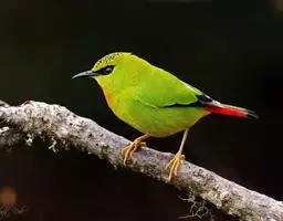 白腹凤鹛是绿鹃科、绿凤鹛属的小型鸟类,体长10-12厘米。上体从头到尾黄绿色,有短的羽冠,…