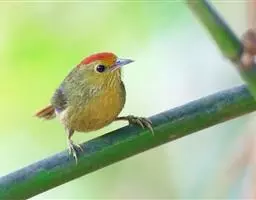 金头穗鹛(学名:Stachyris chrysaea)小型鸟类,体长10~11厘米,是一种黄色小鸟。头顶金黄色有黑色纵纹,眼先黑色,在头、颊和耳羽金黄色的衬托下亦甚醒目。上体橄榄黄色,下体亮黄色,腹和两胁沾绿。