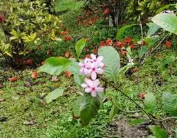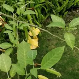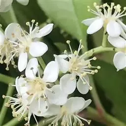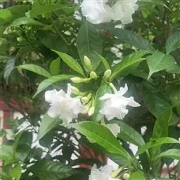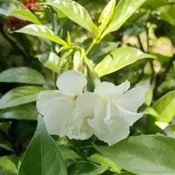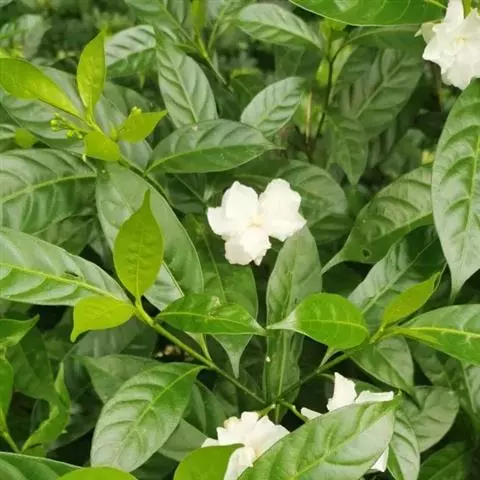 狗牙花 R. Br. ex Roem. & Schult.)是夹竹桃科山辣椒属灌木植物;枝灰绿色;叶椭圆形或椭圆状长圆形,叶面深绿色,背面淡绿色,叶面扁平;花聚伞花序腋生,通常双生,萼片长圆形,边缘有缘毛,花冠白色;果长圆形;花期六至十一月;果期秋季。狗牙花因其花冠裂片边缘有皱纹,状如狗牙,故名。狗牙花原产于印度及中国云南,在广西、广东、台湾及亚洲热带和亚热带等地区广泛栽培。狗牙花喜温暖湿润,不耐寒,宜半阴,对土壤要求不严,喜肥沃、排水良好的酸性土壤,常生长于山地灌木丛中。狗牙花的主要繁殖方式为扦插。狗牙花味酸、凉,有清热降压、解毒消肿的功效,可用于治疗咽喉肿痛,跌打损伤。狗牙花枝叶茂密,株型紧凑,花朵净白素丽,典雅朴质,盛花时十分美观,且花期长,具有一定观赏价值。狗牙花还有较高的经济价值,园林中应用极为普遍,可丛植于林缘、路
