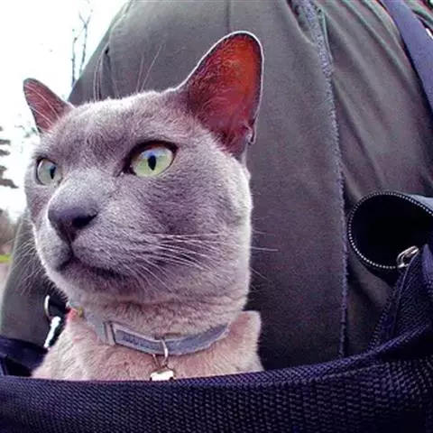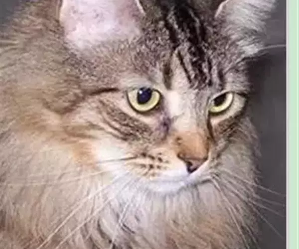 头部:缅因猫头大而圆,颧骨高,鼻梁长,稍凹陷,口呈方形、紧凑眼睛大, 缅因猫 椭圆形,眼色有绿色、金黄色、紫铜色等耳大基宽尖细,两耳间距宽,耳内有密生的长饰毛,并与体毛相衬。