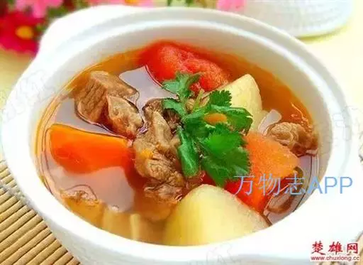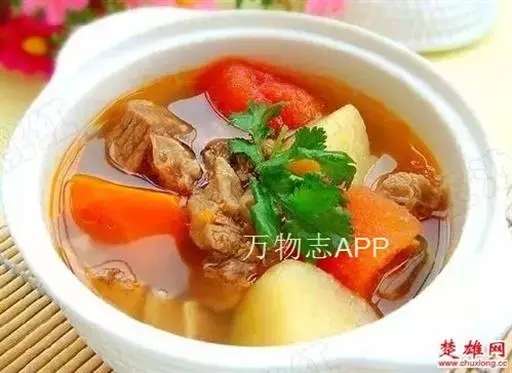 番茄500克、薯仔(土豆)400克、鸡蛋2只、金华火腿50克、生姜3片、牛尾1条、盐少许
