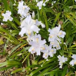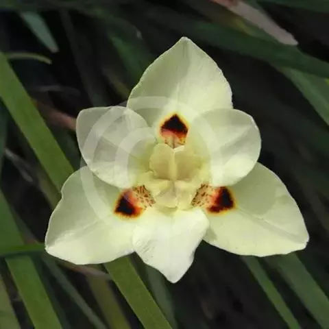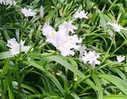 亮叶鸢尾为常绿多年生草本植物。叶面光滑、亮绿色,花茎扁平叶状。原产于巴西。