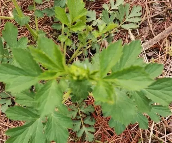 基生叶 为大头羽状复叶,通常有小叶2-6对,连叶柄长10-25厘米,叶柄被粗硬毛,小叶大小极 不相等,顶生小叶最大,菱状广卵形或宽扁圆形,长4-8厘米,宽5-10厘米,顶端急尖或 圆钝,基部宽心形至宽楔形,边缘常浅裂,有不规则粗大锯齿,锯齿急尖或圆钝,两面绿色, 疏生粗硬毛;茎生叶羽状复叶,有时重复分裂,向上小叶逐渐减少,顶生小叶披针形或倒卵 披针形,顶端常渐尖或短渐尖,基部楔形;茎生叶托叶大,绿色,叶状,卵形,边缘有不规则粗大锯齿。