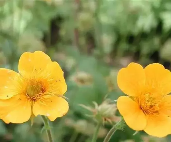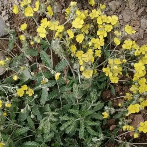 花序顶生,疏散排列,花梗被短柔毛或微硬毛;花直径1-1.7厘米;花瓣黄色, 几圆形,比萼片长;萼片卵状三角形,顶端渐尖,副萼片狭小,披针形,顶端渐尖稀2裂,比萼片短1倍多,外面被短柔毛及长柔毛;花柱顶生,在上部1/4处扭曲,成熟后自扭曲处脱落,脱落部分下部被疏柔毛。