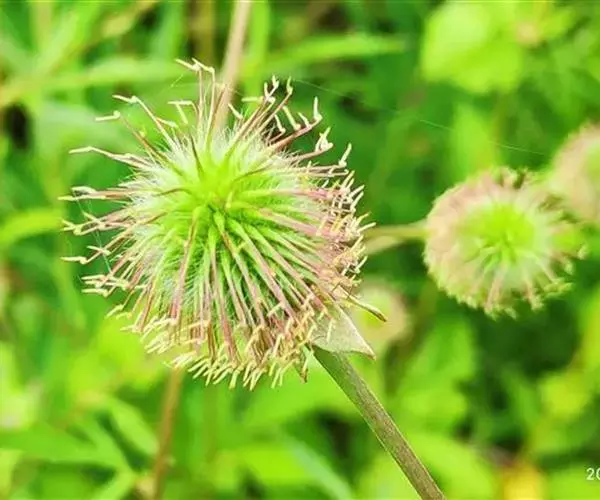 聚合果倒卵球形,瘦果被长硬毛,花柱宿存部分无毛,顶端有小钩;果托被短硬毛,长约1毫米。