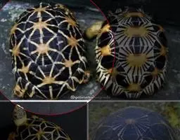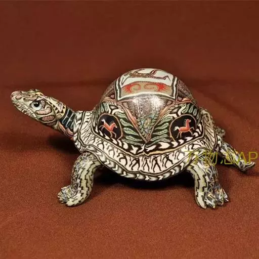 生活时背甲橄榄绿色或棕褐色,杂有黄白色的放射纹。腹甲黄色。头及四肢棕褐色。