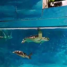 海龟是用肺进行呼吸的,但胸部不能活动,是一种吞气式的呼吸方式,每隔一段时间便要将头伸出海面来呼吸。但也可以比较长时间地在水下生活,依靠肛囊来过滤氧气。但夜间,海龟是要浮在水面上休息的,这时候是完全靠肺呼吸。