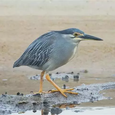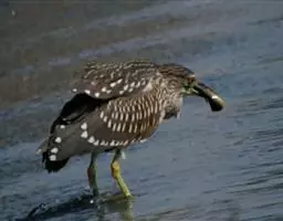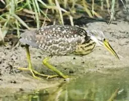 棕夜鹭(英文名称:Rufous Night-heron, Nankeen Night Heron, Rufous Night Heron)是一种中型涉禽,身长56 - 66 cm。这是一个矮胖的鹭。黑色头冠,腿爪是明亮的黄肉桂色。头部硕大,短脖子,腿较短。