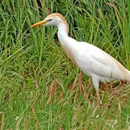 牛背鹭:体较肥胖,喙和颈较短粗。夏羽大都白色;头和颈橙黄色,…