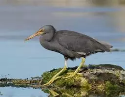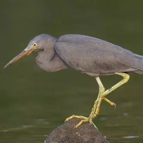在繁殖期枕后长出两根别致的白色长翎羽。该鸟喙是深橄榄绿色,眼睛黄色。幼鹭身上有各种颜色的条纹如