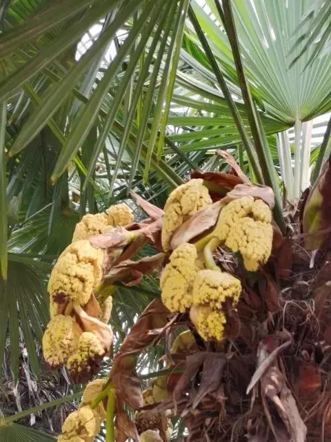 棕榈 H. Wendl.)是棕榈科棕榈属常绿乔木,树干圆柱形;叶片近圆形,叶柄具细圆齿;花小黄绿色,…