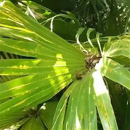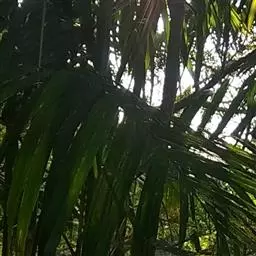 细叶棕竹,灌木,茎细如竹,多数聚生,有网状叶鞘。叶半圆形,掌状深裂,裂片狭长,阔线形,软垂,裂片7…