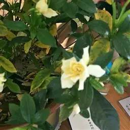 栀子花,花朵簇状约30枚瓣,奶油色,中心黄色;花径12cm;气味果香.