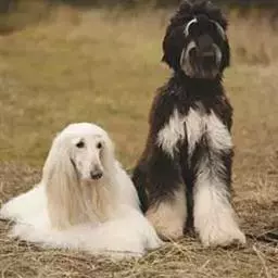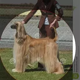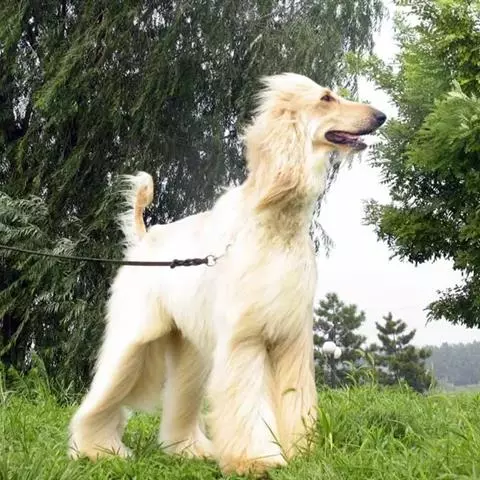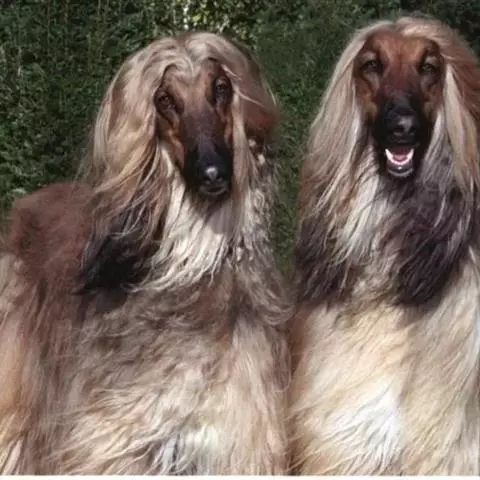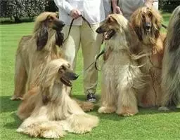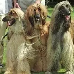 阿富汗猎犬全身披丝绢状的长毛,毛色鲜艳,呈多种颜色,背中线附近毛短,…