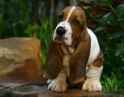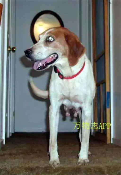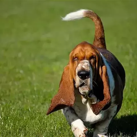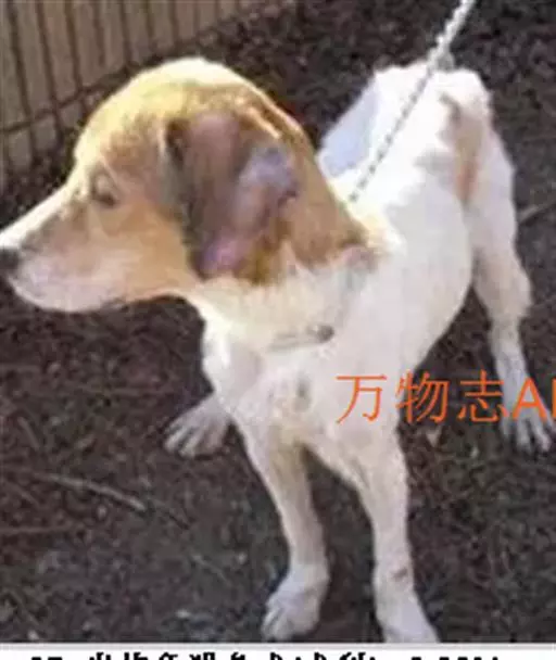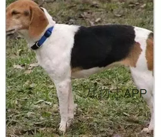美国猎狐犬 美国猎狐犬头颅部较长,枕部稍成圆顶形,耳适度低位而长,拉起几乎达鼻尖,耳质地细致,相当宽,几乎完全缺乏直立能力而贴近头部,其前缘稍内转向颊部,耳尖圆眼大,眼距宽,褐色或淡褐色,吻相当长,直而方,额鼻阶明显。喉部干净,无皮折,但允许在嘴角下略有褶皱。肩胛斜,胸深,58厘米高的猎犬胸围71厘米为良好。肋骨扩张,背长适度,腰宽而稍拱起,尾中度高位,尾竖立,但不向前位于背上,稍弯,略成刷状。被毛为长度适中的贴身而硬的猎犬被毛,毛色为任何毛色 。