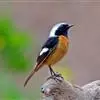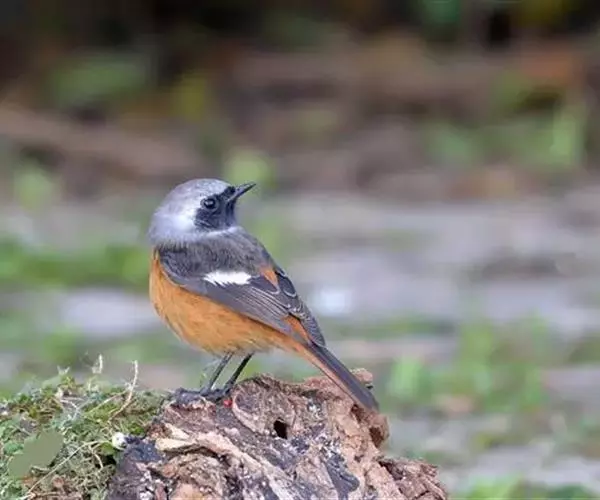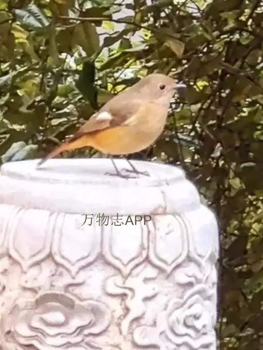 北红尾鸲(学名:Phoenicurus auroreus):是小型鸟类,体长13-15厘米。雄鸟头顶至直背石板灰色,下背和两翅黑色具明显的白色翅斑,腰、尾上覆羽和尾橙棕色,中央一对尾羽和最外侧一对尾羽外翈黑色。前额基部、头侧、颈侧、颏喉和上胸概为黑色,其余下体橙棕色。雌鸟上体橄榄褐色,两翅黑褐色具白斑,眼圈微白,下体暗黄褐色。 相似种红腹红尾鸲头顶至枕羽色较淡,多为灰白色,尾全为橙棕色,中央尾羽和外侧一对尾羽外翈不为黑色。
