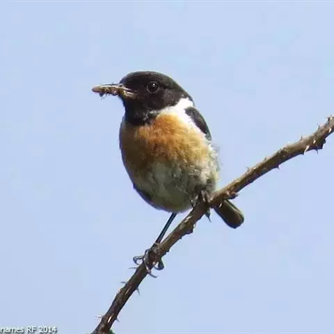 黑喉石鵖,雀形目鹟科石鵖属小型鸣禽,俗名谷尾鸟、黑喉石。其体色为黑褐色。雄鸟头部、背部、两翼及尾黑色,…