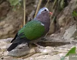 厚嘴绿鸠(学名:Treron curvirostra):是鸟纲、鸠鸽科的一种体型较小的鸟类,体长为25-28厘米,体重170-190克。它的体型与家鸽差不多,嘴短而厚,呈淡黄绿色或铅白色,嘴基的两侧呈珊瑚红色,脚也是珊瑚红色,爪为角褐色。