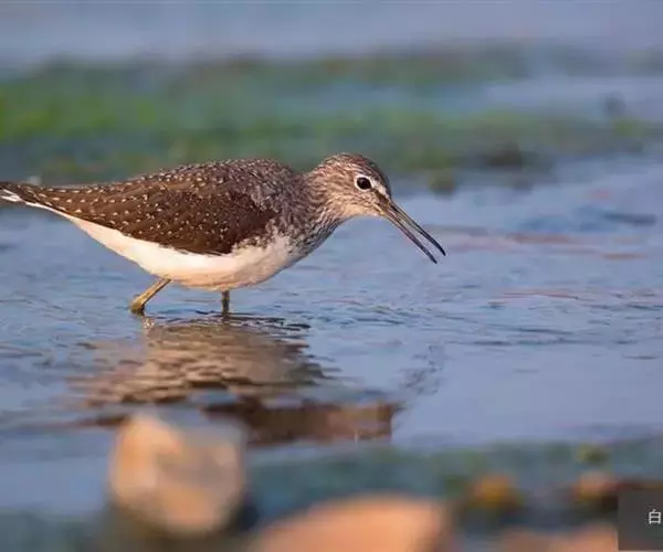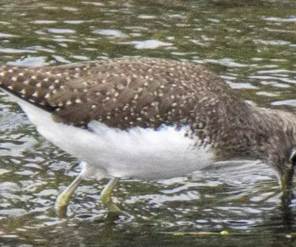 雌鸟和雄鸟相似,但背部不呈暗栗红色而为暗橄榄绿色,下体羽色略较雄鸟为浅,尾下的覆羽为暗绿色,并杂以白色的斑块。