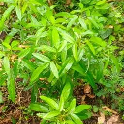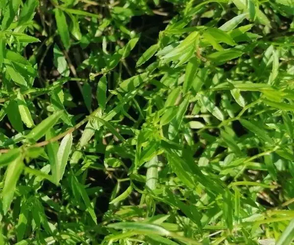 叶互生,无柄或近无柄,椭圆状披针形至条形,长8-25厘米,宽2-6厘米,先端急尖,基部圆形至阔楔形,全缘或顶部有明显的锯齿,无毛。