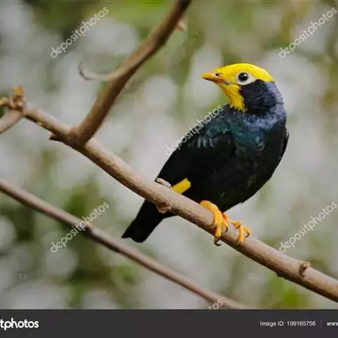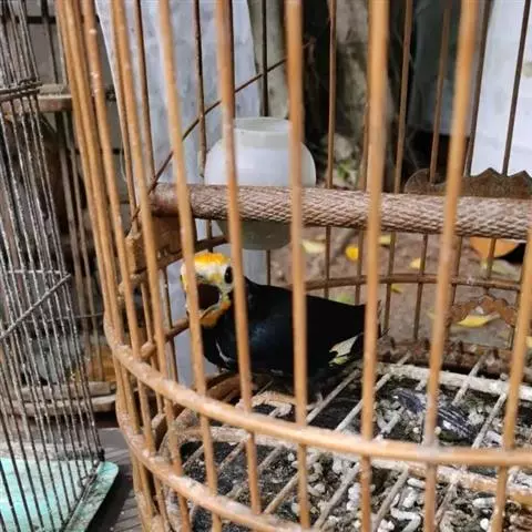 金冠树八哥为椋鸟科树八哥属的鸟类。体长约23厘米,闪辉黑色。特征为具翼斑及颏黄色,脸颊裸露皮肤粉黄色。…