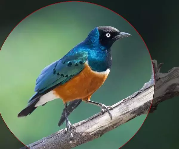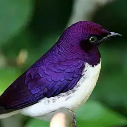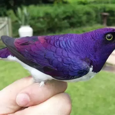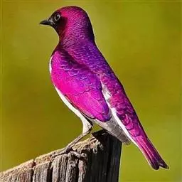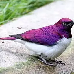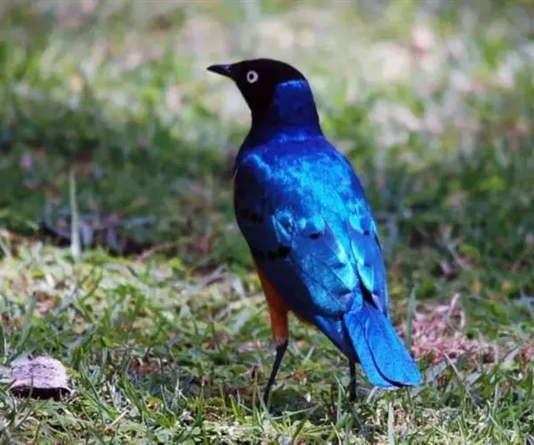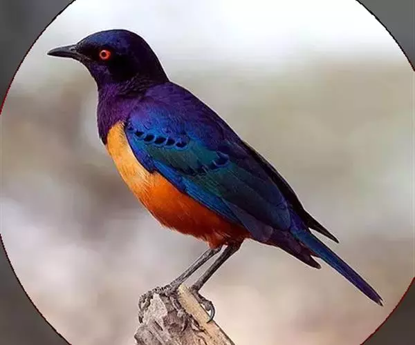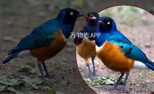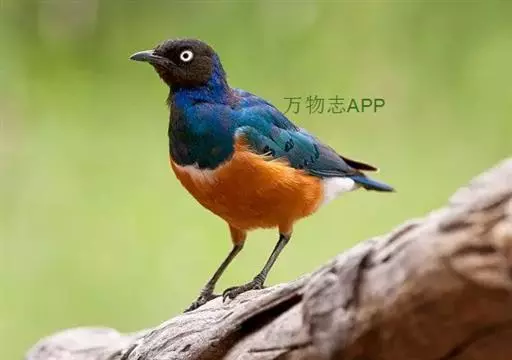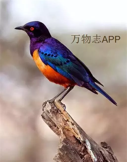 楔尾丽椋鸟 楔尾丽椋鸟21~25厘米,雄性体重68~73克,雌性体重65~68克,属中型鸟类。成鸟顶帽、后枕、颈、翕、背部和尾覆羽形成虹彩绿色;耳羽蓝绿色;而下体的大部分(颏,喉,胸,尾下覆羽)呈明亮的绿色;腹部和侧面有淡蓝色光泽;翅膀亮绿色,和紫色的肩部及翼侧的青铜色调形成对比。覆羽有深蓝色斑点;尾羽有一些交叉形图案的亮绿色。虹膜红色,腿和嘴黑色。两性类似,但有橙色而非红色的光圈。