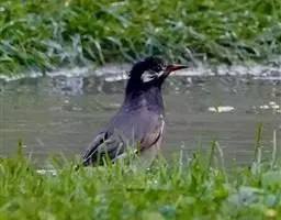 黑冠椋鸟:中等体型的椋鸟,体长21厘米。雄鸟前头为黑色并具金属光泽;头顶、颈项和羽冠亦为黑色;翅及翅上覆羽黑色;尾羽褐色,具白色端斑;上体灰色;下体淡黄褐色。雌鸟形态与雄鸟相似,但羽冠较雄鸟为短。虹膜蓝白或乳黄色;嘴峰铅绿色;跗蹠及爪柠檬黄色。头具黑色羽冠,与其他椋鸟易于区别。主要栖息于开阔落叶阔叶林和灌木林中以及多营巢于树洞中或其他洞穴内。属群鸟共栖。常4-8只结小群活动。鸣声清脆响亮。食物有果实和浆果,偶食花蜜和小型昆虫。分布于印度、中国云南耿马。常见于印度城镇、村庄及铁路沿线。偶见于中国云南西南部和西藏东南部。