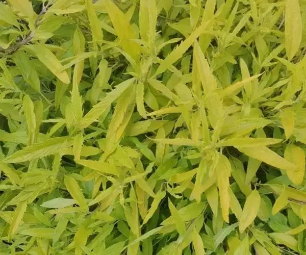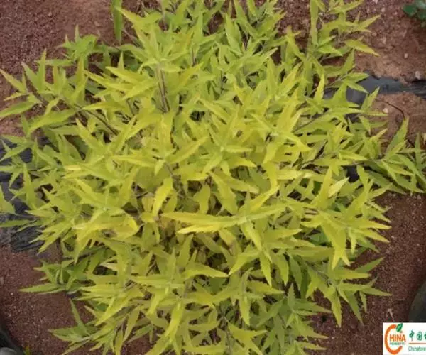 金叶莸(学名:Caryopteris×clandonensis."Worcester Gold" ):是人工培植的落叶灌木,马鞭草科莸属植物,叶片金黄色,从展叶初期到落叶终期,从基部到穗部,叶片始终遗片金黄色,一个极具观赏价值的花灌木树种。单一造型组团或与红叶小檗、侧柏、桧柏、小叶黄杨等搭配组团,黄、红、绿,色差鲜明,组团效果极佳。特别在草坪中,流线型大色块组团,亮丽而抢眼,常常成为绿化效果中的点睛之笔。