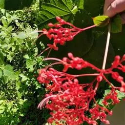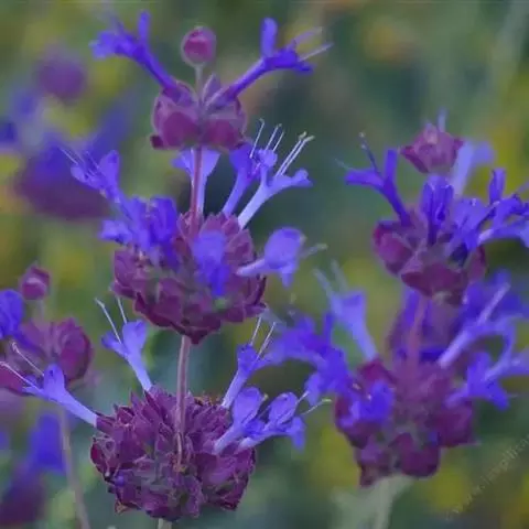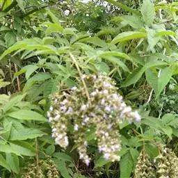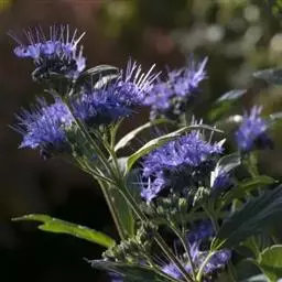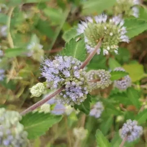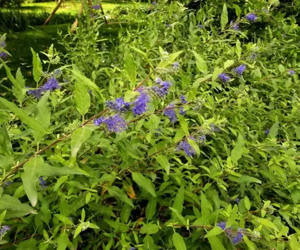 原种(莸):多年生草本,高约80厘米;茎方形,疏被柔毛或无毛。叶片膜质,卵圆形,卵状披针形至长圆形,长2-14厘米,宽1.2-5厘米,顶端渐尖至尾尖,基部近圆形或楔形,下延成翼,边缘具粗齿,两面疏生柔毛或背面的毛较密,侧脉3-5对;叶柄长0.5-2厘米。