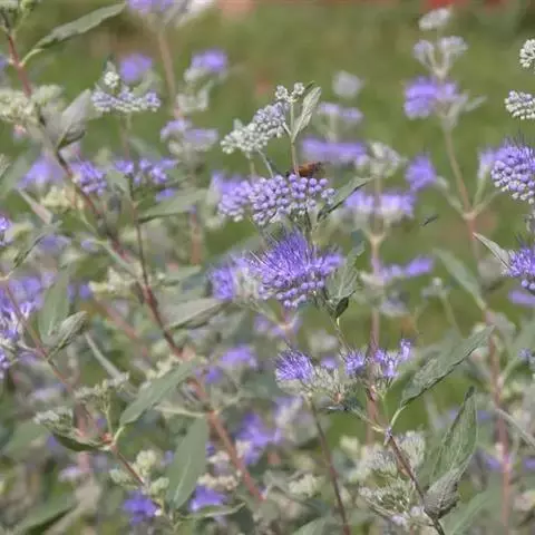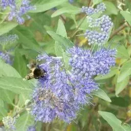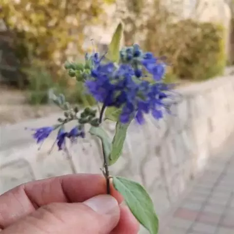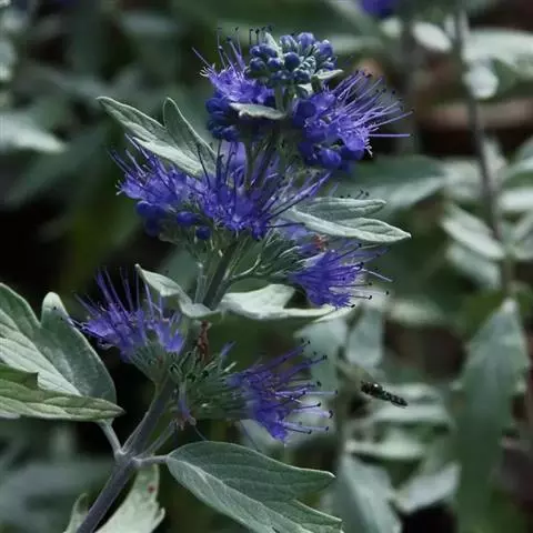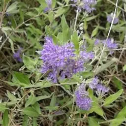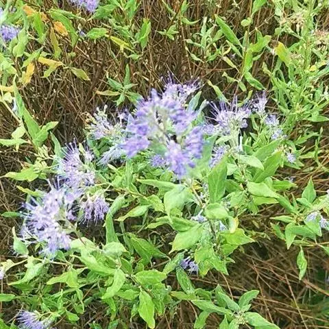 金叶莸是园林培植品种。落叶灌木类,株高50-60厘米,枝条圆柱形。单叶对生,叶长卵形,长3-6厘米,叶端尖,基部圆形,边缘有粗齿。叶面光滑,鹅黄色,叶背具银色毛。聚伞花序紧密,腋生于枝条上部,自下而上开放;花萼钟状,二唇形裂,下萼片大而有细条状裂,雄蕊;花冠、雄蕊、雌蕊均为淡蓝色,花紫色,聚伞花序,腋生,蓝紫色,花期在夏末秋初的少花季节(7-9月),可持续2-3个月。