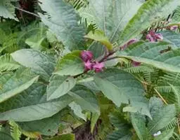 二歧聚伞花序腋生,花序梗长2-3-(11)厘米,疏被柔毛,苞片披针形至线形;花萼杯状,外面被柔毛,长2-4毫米,结果时增大近一倍,顶端5浅裂,裂齿三角形,长约0.6-1毫米;花冠紫色或红色,长1-2厘米,外面被疏毛,喉部疏生柔毛,顶端5裂,裂片全缘,下唇中裂片较大,花冠管长约1-1.5厘米;雄蕊4枚,与花柱均伸出花冠管外;子房无毛,有或无腺点。蒴果黑棕色,4瓣裂,无毛,无翅,有网纹。花期7-8月,果期8-9月。