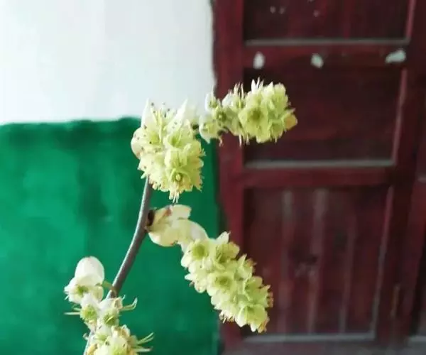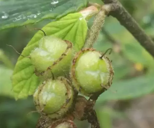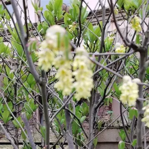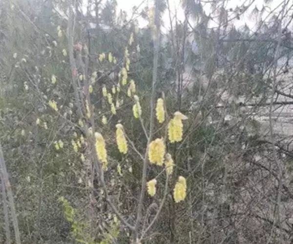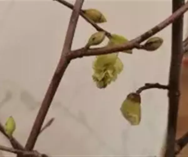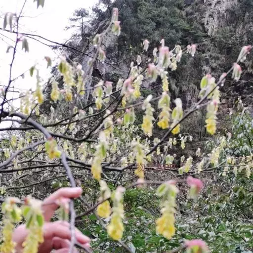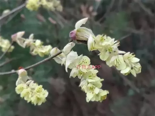 蜡瓣花 小蜡瓣花(Corylopsis sinensis Hemsl. var.parvifolia Chang)嫩枝有毛。叶倒卵形,长3-5.5厘米,宽2-4厘米,先端略尖,基部不等侧心形,下面有黄褐色星状柔毛,侧脉7-9对,在上面下陷,边缘有锯齿;叶柄长5-8毫米,有星毛。果序长4厘米,被绒毛,有蒴果10-14个,果序柄长1厘米。蒴果长7-8毫米,被星毛,宿存花柱长5-6毫米。分布于中国安徽,见于金寨地区。叶和果实的形态很接近于蜡瓣花,特别是宿存萼筒长为蒴果的4/5,只是叶片极为细小。