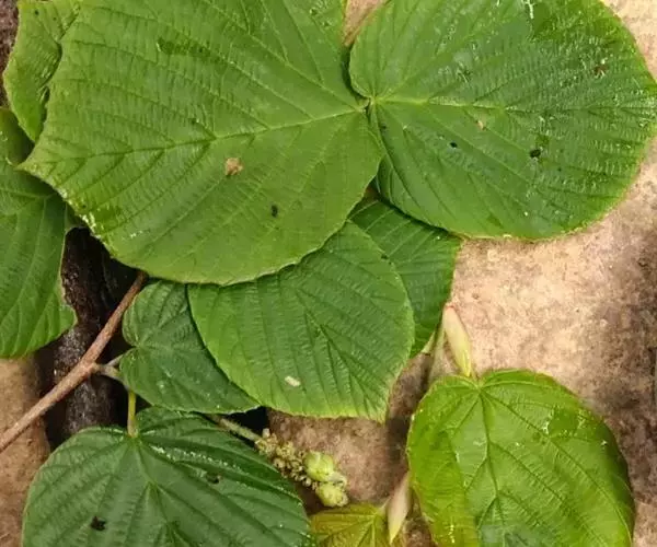 落叶灌木;嫩枝有柔毛,老枝秃净,有皮孔;芽体椭圆形,外面有柔毛。叶薄革质,倒卵圆形或倒卵形,有时为长倒卵形,长5-9厘米,宽3-6厘米;先端急短尖或略钝,基部不等侧心形;上面秃净无毛,或仅在中肋有毛,下面有灰褐色星状柔毛;侧脉7-8对,最下一对侧脉靠近基部,第二次分支侧脉不强烈;边缘有锯齿,齿尖刺毛状;叶柄长约1厘米,有星毛;托叶窄矩形,长约2厘米,略有毛。