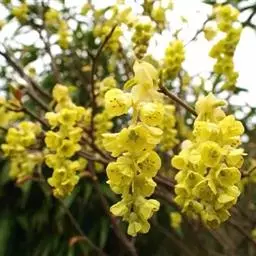 蜡瓣花(学名:Corylopsis sinensis Hemsl.)是金缕梅科,蜡瓣花属落叶灌木;嫩枝有柔毛,老枝秃净,有皮孔;叶薄革质,叶片倒卵圆形或倒卵形,有时为长倒卵形,先端急短尖或略钝,边缘有锯齿,齿尖刺毛状;叶柄有星毛;托叶窄矩形,总状花序;花序柄被毛,花序轴有长绒毛;总苞状鳞片卵圆形,苞片卵形,小苞片矩圆形,萼筒有星状绒毛,萼齿卵形,花瓣匙形,雄蕊比花瓣略短,子房有星毛,蒴果近圆球形,种子黑色。