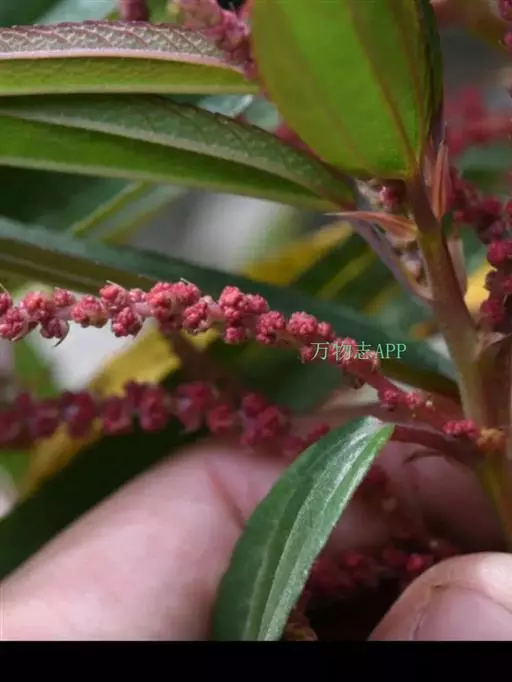 两性花序下部或近基部有少数分枝,稀不分枝,雄性花序分枝,雌性花序不分枝,穗状;雄团伞花序直径约2毫米,雌团伞花序直径2-2.5毫米,互相邻接;苞片狭三角形,长1.2-2毫米。雄花:花被片4,椭圆形,长约1毫米,基部合生,外面疏被短糙伏毛;雄蕊4,花丝长1.6毫米,花药直径0.6毫米;退化雌蕊倒卵球形,长约0.5毫米。雌花:花被纺锤形,狭倒卵形或倒卵形,长约0.7毫米,果期长1-1.3毫米,顶端有2小齿,