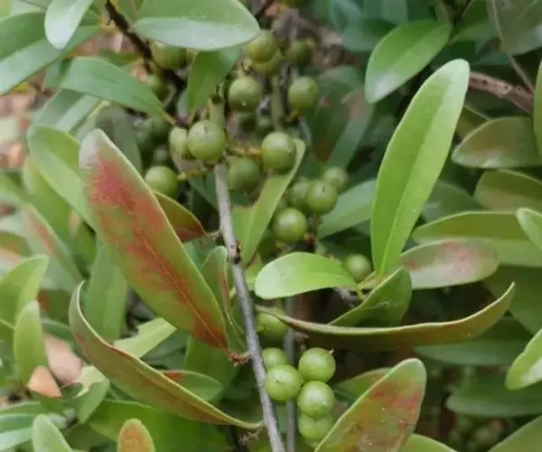 攀援灌木或藤本,稀小灌木,长1—3米;幼枝无毛,老枝具皮孔。叶坚纸质,倒卵形或长圆状倒卵形,长 酸藤子 3—4厘米,宽1—1.5厘米,稀长达7厘米,宽达2.5厘米,顶端圆形,钝或微凹,基部楔形,全缘,两面无毛,无腺点,背面常被薄白粉,侧脉不明显;柄长5—8毫米。总状花序着生于次年无叶枝上,侧生或腋生,长3—8毫米,被细微柔毛,有花3—8朵,基部具1—2轮苞片,花梗长约1.5毫米,被疏微柔毛;小苞片钻形或长圆形,具缘毛,通常无腺点;花4数,长约2毫米;花萼基部连合达1/2或1/3,萼片卵形或三角形,急尖,无毛,通常具腺点;花瓣白色或带黄色,分离,开花时强烈展开,卵形或长圆形,顶端圆形或钝,具缘毛,外面无毛,里面密生乳头状突起,具腺点;雄蕊在雌花中退化,长达花瓣的2/3,在雄花中超出花瓣很多,基部与花瓣连合;花丝挺直;花药卵形或肾形,背部具腺点,雌蕊在雄花中退化或几无,在雌花中较花瓣略长,子房瓶状,无毛;花柱细长,柱头扁平或几呈盾状。果球形,直径约5毫米,光滑,腺点不明显。花期12月至翌年3月,果期4—6月.