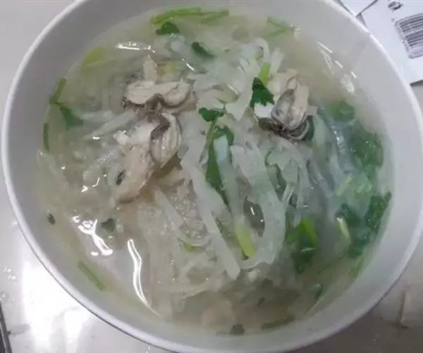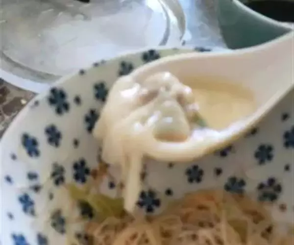 5、将上述所有材料入锅以中小火慢煮至滚,最后淋少许香油、白胡椒粉即可盛起。