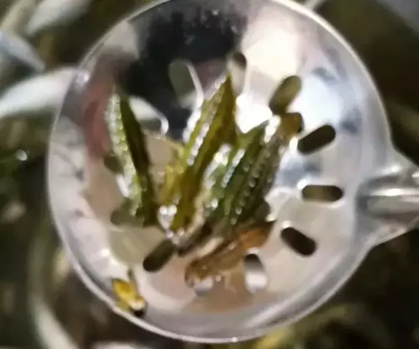 (2) 将捣碎的豆腐和肉汤一起倒入锅中煮。