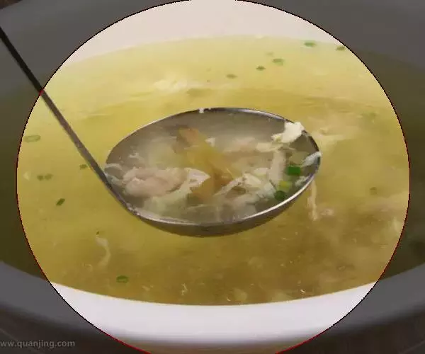 嫩豆腐(250克)、绿叶菜(少许)、鸡肉(60克)、味精(少许)、鸡蛋(3只)、精盐(少许)、水发竹荪(40克)、胡椒粉(少许)、鸡汤(1碗)