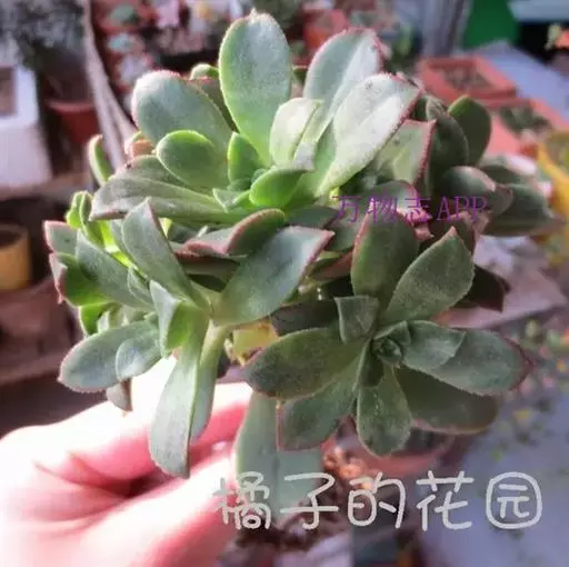 红缘莲花掌属蔷薇目、景天科植物,原产大西洋的加那利群岛。质厚,蓝绿色,被白霜,叶缘红褐色。聚伞花序,…