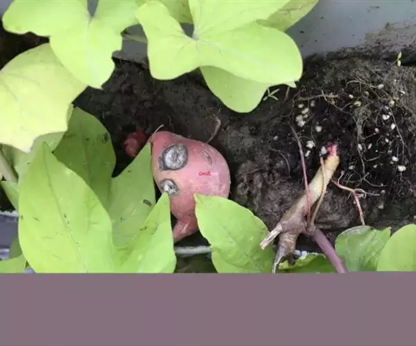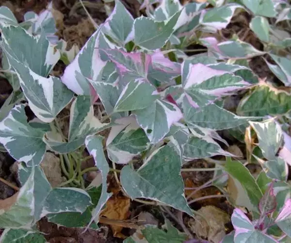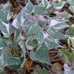 彩叶番薯为番薯的一种,因生长的叶子为彩色而得名。茎蔓性,能匍匐或悬垂生长。叶不规则心形或缺裂,叶面有紫红、乳白斑纹,甚为柔和美丽。生性强健,不耐阴,适合盆栽、吊盆或地被美化。