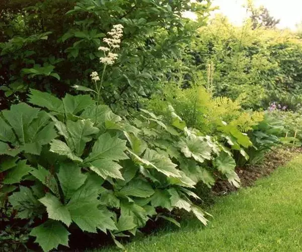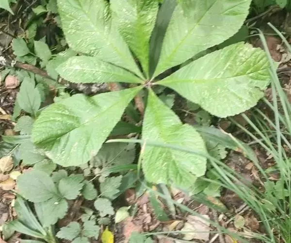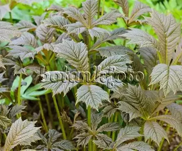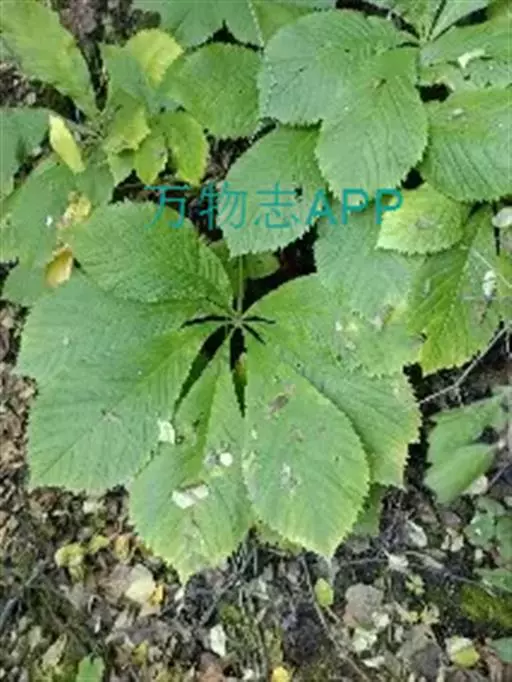 多年生草本,高0.6-1米。根状茎粗壮,横走。茎无毛。基生叶少数,具长柄,为掌状复叶,小叶片5(-7),近倒卵形,长15-35厘米,宽10-25厘米,先端3(-5)浅裂,裂片顶端渐尖,边缘有粗锯齿,腹面无毛,背面沿脉疏生柔毛;叶柄长15-30厘米,疏生柔毛,基部扩大呈鞘状,边缘具长睫毛;茎生叶互生,较小。圆锥花序顶生,长15-30厘米,多花;花梗和花序轴均密被鳞片状毛(有时具腺头);萼片7-5,白色,近卵形,长约2.1毫米,宽约1.1毫米,先端渐尖,腹面无毛,边缘和背面疏生腺毛,具羽状脉,脉于先端不汇合;花瓣不存在;雄蕊通常10,长约4毫米;心皮2,下部合生,子房近上位,卵球形,长约1.5毫米,花柱长约1.3毫米。蒴果;种子多数。染色体2n=30。花期6-7月。