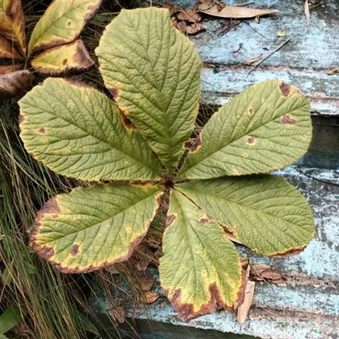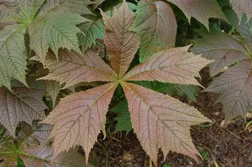 鬼灯檠(也称作:牛角七或老蛇莲)一种喜湿润多年生植物带有大而漂亮的叶,在春天具有一种金属般的光泽,在夏天退至绿色,当天气变得更凉爽时叶子又呈现金属般的光泽,能产生一个遮阴“密林”效应。
